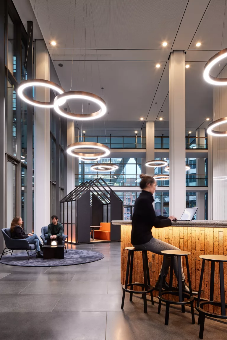 Von der Anforderungsermittlung über die Wettbewerbsprüfung bis zur Entwurfsoptimierung – combine zeichnet auch verantwortlich für die Entwicklung des neuen Bürokonzepts und begleitete das Unternehmen beim Change Management für die Implementierung moderner Arbeitswelten.