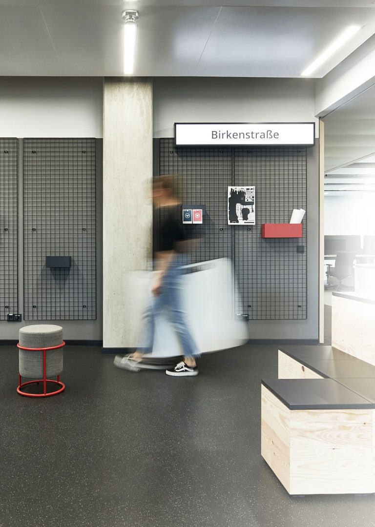Hier haben wir in außergewöhnlichen Raumtiefen die bisherige Einzelarbeitsplatzzuweisung im Sinne des hauseigenen activity based working Konzeptes aufgebrochen und offene, vielseitige Bürowelten geschaffen. Auf Basis der Firmenphilosophie und -werte entsteht mit hauseigenen Produkten ein vielseitiges und abwechslungsreiches Umfeld mit verschiedensten Ausprägungen und Stimmungen.