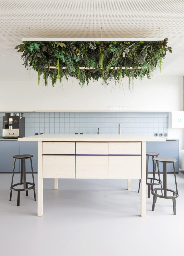 Durch eine intensive Designanalytik wurden die gestalterische Essenz der Marke Stadtwerke München sowie die räumlichen Anforderungen herausgearbeitet. Basierend auf den Werten und der Kultur des Unternehmens entstand eine Designguideline, welche die wesentlichen Aspekte der zukünftigen Arbeitsweisen mit den Themenschwerpunkten der Stadtwerke München verbindet. Der lokale Bezug, die Versorgungsleistungen, Offenheit, Transparenz und Flexibilität übertragen sich somit in den räumlichen Kontext und ergeben ein abwechslungsreiches und inspirierendes Umfeld.